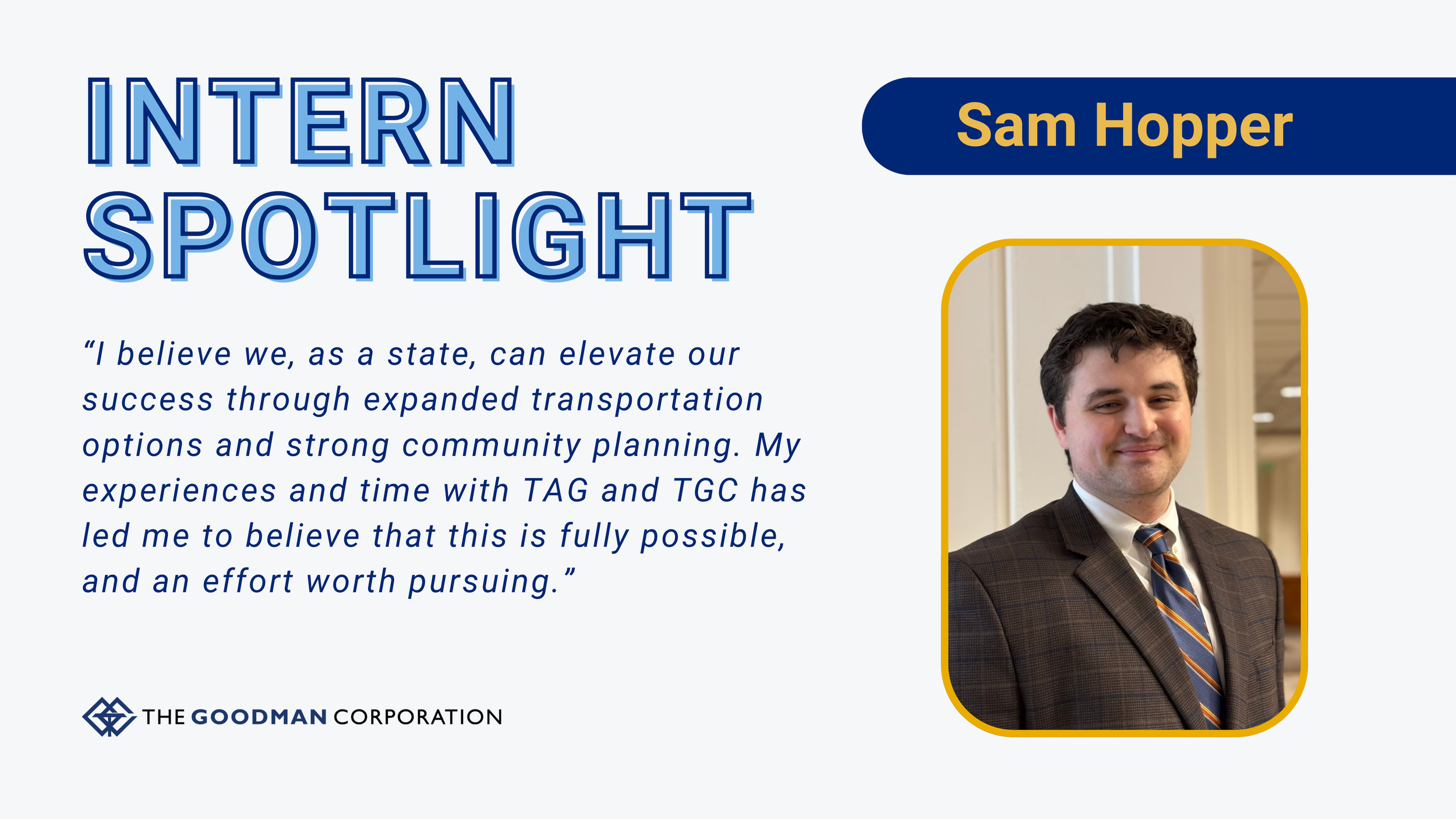 HOUSTON, TX – This past summer, TGC partnered with the Transportation Advocacy Group (TAG) Houston to welcome intern Samuel Hopper, a graduate student pursuing a Master of Public Affairs at the University of Texas at Austin. Through this partnership, TGC and TAG are helping shape the next generation of transportation policy leaders – connecting classroom insight with real-world impact. As a TAG Houston Fellow working alongside TGC’s planning team, Samuel contributed to various projects and initiatives, advancing TGC’s mission to connect capital to communities and helping transform policy frameworks into meaningful improvements for generations to come.